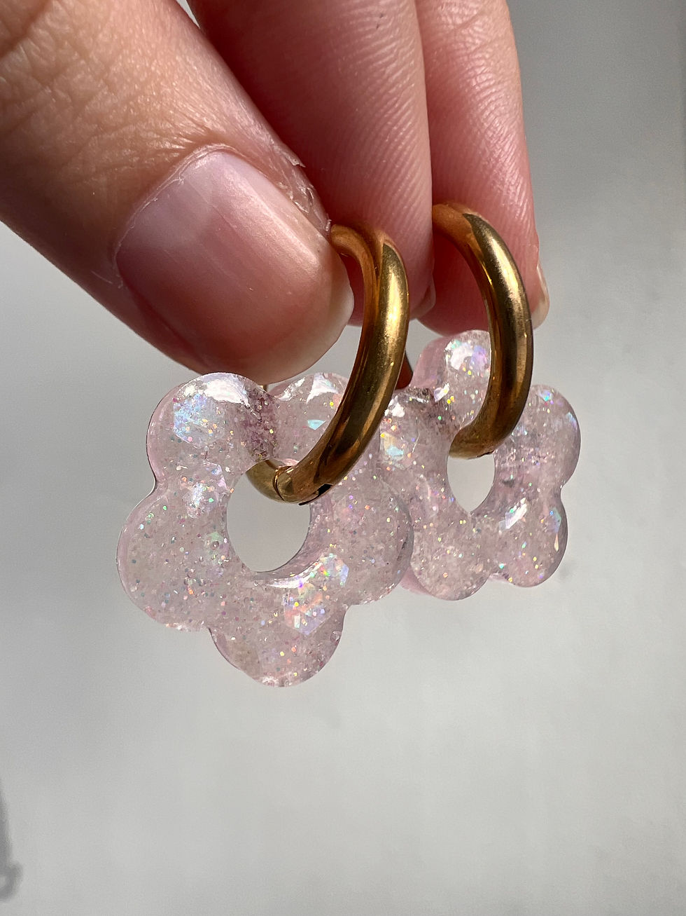 Pampilles fleurs argentées reflets arc-en-ciel